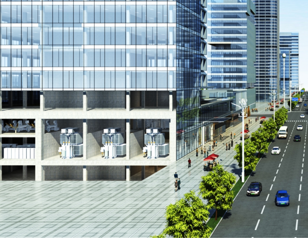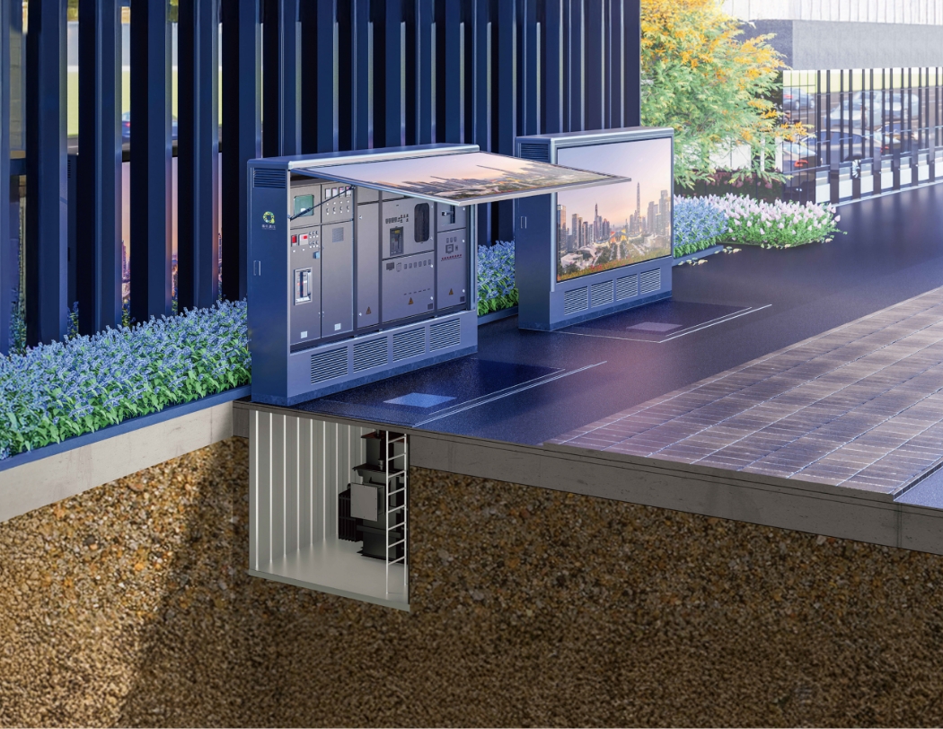 液浸式不燃(rán)配電(diàn)變壓器水浸時可安全運行,置於地下,不占用地表空間。緊(jǐn)湊型高低壓電氣櫃置於地上, 外(wài)置LED顯示屏或傳媒燈箱。城市戶外隱型配電係(xì)統以建設高質量城市戶外配電(diàn)基礎設施為目標(biāo),綜合提升戶(hù)外配電基礎設施消防安全、防汛能力、供電可靠性和外(wài)觀形象。